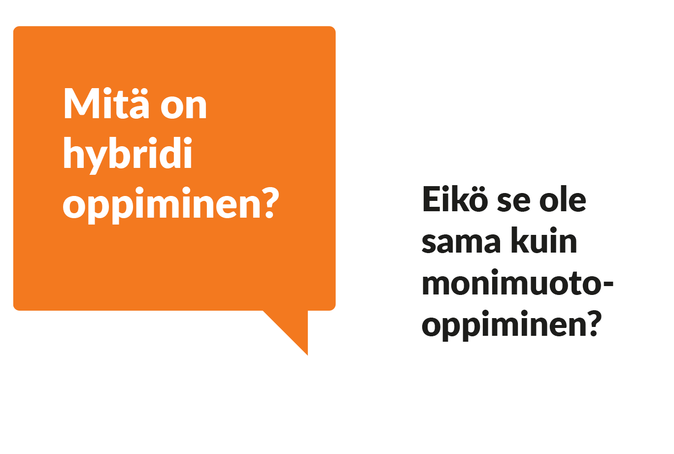Käsitteitä 'hybridioppiminen' ja 'monimuoto-oppiminen' käytetään usein vaihtoehtoisesti, mutta ne eivät ole sama asia. Hybridi oppiminen -lähestymistapana vähentää reilusti perinteisessä oppimisympäristössä, pulpetin ääressä, vietettyä aikaa ja vie opetusta ja kurssien järjestämistä enemmän verkkoon.